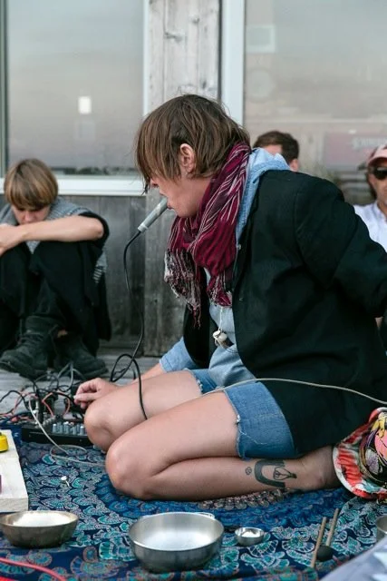 Through simple directives inside of a temporal zone, our collaboration interacts with natural and architectural spaces that serve as containers for our pieces. During our Fire Island Residency and Performance we practiced Somatic Listening, inspired by experimental composer Pauline Oliveros’ Deep Listening Band, which recorded its first album in a cistern. The technique inspires non-judgmental listening and environmental sounding, stretching the boundaries of performer, listener, composer, space, structure, and mind-body.