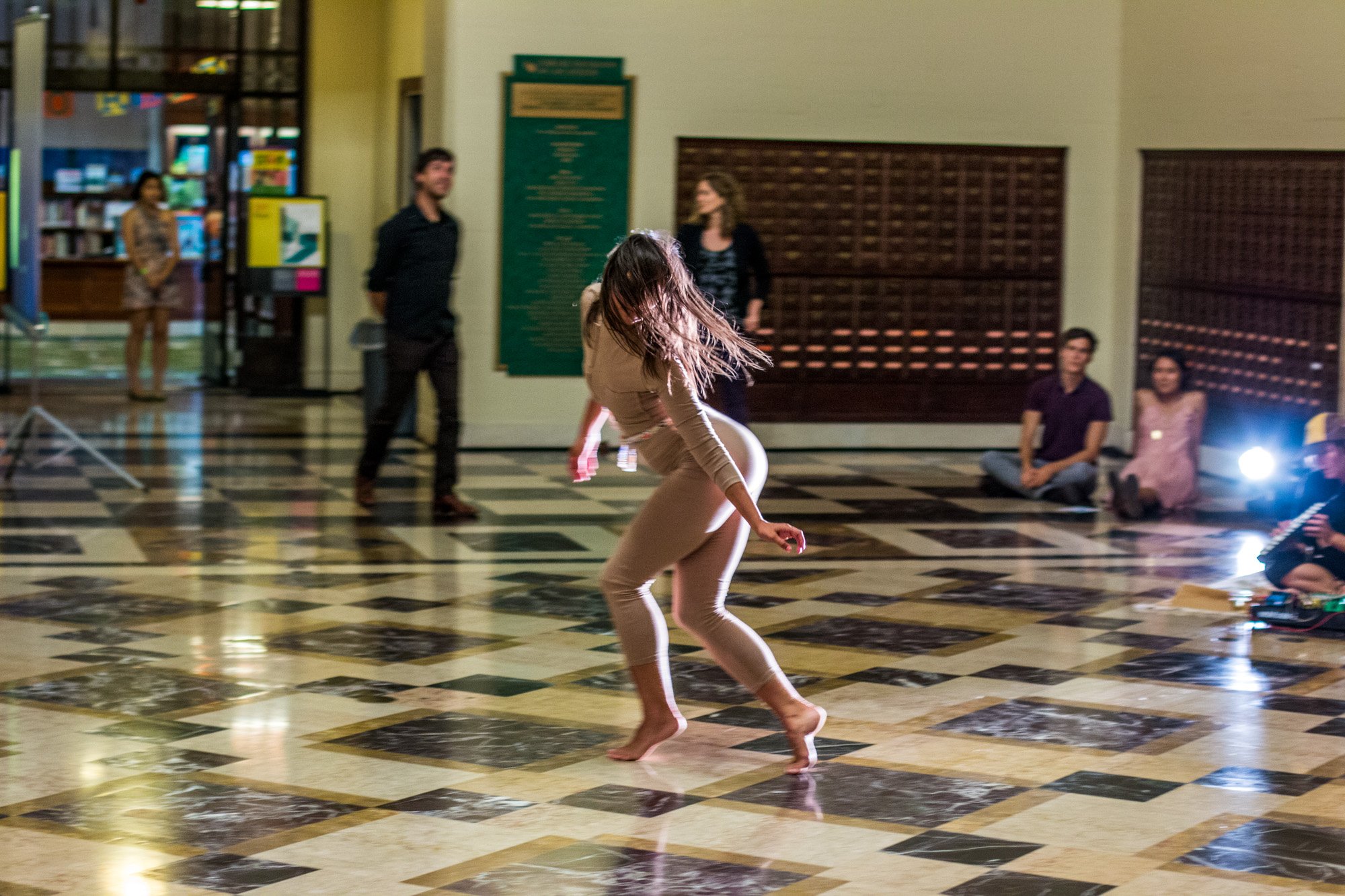 Los Angeles Public Library Performance: Based on the 1937 image of Bella Lewitsky as a "sacrificial maiden," found in the Library's photo collection, Hallelujah Already ritually prepares the body for a coming Apocalypse. The body as rhythmic instrument and vibratory source cycles through life and death.